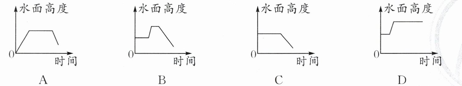 答案:2. B 【提示】根据题意可知,水缸里原有一部分水(未满);后有一孩童落入水中,水面高度逐渐上升没过孩童头顶;同伴大声呼叫寻求帮助时,水面高度不变;司马光砸破水缸后,水面高度逐渐下降,故选 B。