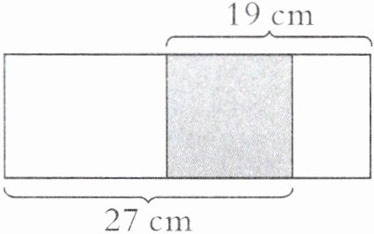 要求图中最大长方形的周长,必须要知道最大长方形的长和宽的和。从图中可以看出,涂色正方形的边长是最大长方形的宽,再运用转化的策略,可以知道两条线段的长度之和,其实就是图中最大长方形的一条长与一条宽的长度之和,根据长方形的周长$=($长$+$宽$)×2$可以求得。解答:$(27 + 19)×2 = 92$(厘米)