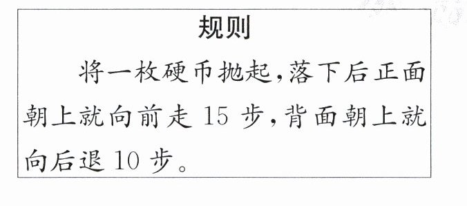 【提示】设硬币背面朝上x次,则正面朝上有(10-x)次,根据题意可得方程(10-x)×15-10x=50,解方程求出x的值即可。