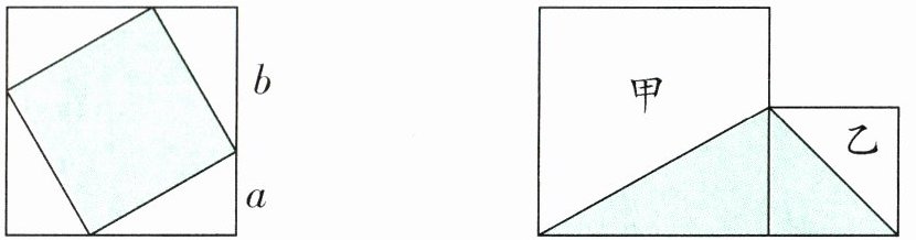 空白部分甲面积为大正方形面积减去大三角形面积:$b^2-\frac{1}{2}b· a=4a^2-\frac{1}{2}·2a· a = 3a^2$。