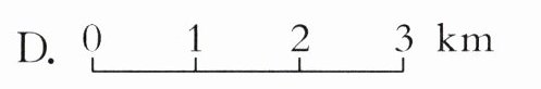 2. 有四幅不同的地图,用图上3厘米的距离表示的实际距离最短的比例尺是(