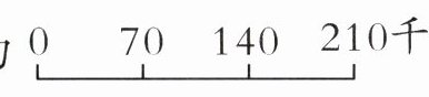 2. 然后根据比例尺公式$比例尺=\frac{图上距离}{实际距离}$计算比例尺: