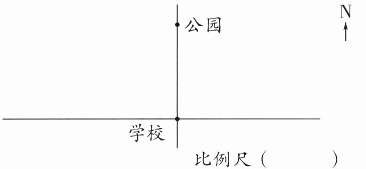 2. 公园在学校正北方向400米处,体育馆在学校正西方向600米处。请你在图上写出比例尺,并标出体育馆的位置。