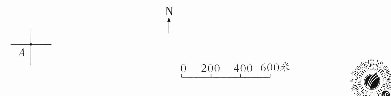 【提示】如图,观察路线图可以发现 D 处在 A 处的右上角,所以根据“两点之间线段最短”,把 A 处和 D 处连线,通过测量和分析可以知道小白兔想回到 A 处的最短路线是从 D 处向南偏西 45°方向跑 400 米。小白兔从 A 处出发最后回到 A 处的路线图如图所示。
