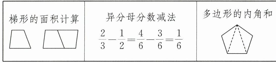 答案:9. C 【提示】梯形面积公式的推导,异分母分数减法的计算,多边形内角和公式的推导都运用了“转化”的策略。