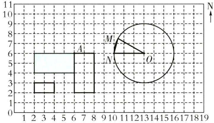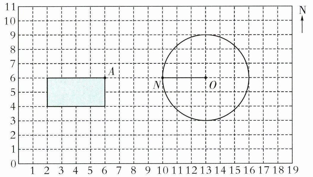(3)图中点O是圆的圆心,点N是圆周上的一点。用数对表示出点O、点N的位置:O( , );N( , )。