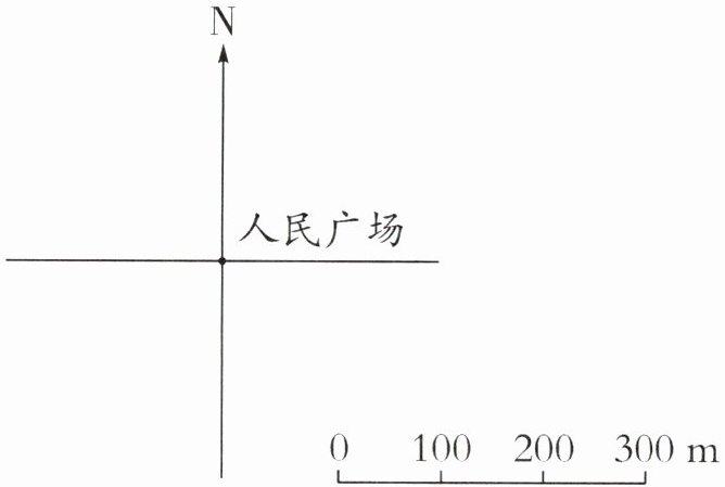 (2)在人民广场南偏西$65^{\circ }$方向 250 m 处是超市,请你标出超市的位置。