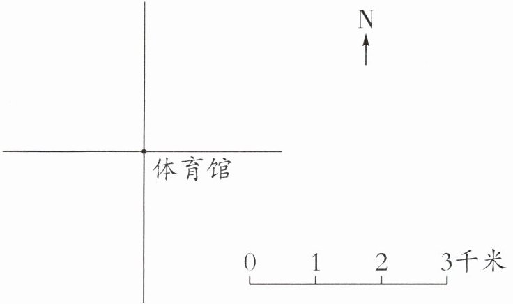 (2)以体育馆为参照点,按南偏东$30^{\circ}$方向画射线,在射线上取每厘米代表1千米的1厘米处点上一点,标为公园。