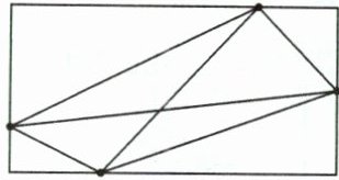 右图是一个长方形框架,上面有4枚钉子。在每两枚钉子间拉上一条线后,框架内共有多少个三角形?你知道它们各是什么三角形吗?