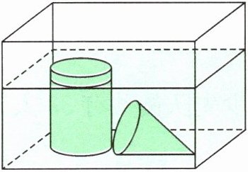 例 一个长方体容器内装有一部分水,已知容器的内壁底面是长方形,长 21 厘米、宽 5 厘米。现把一个小圆柱和一个与圆柱等底等高的小圆锥放入容器中(如下图),结果圆锥完全浸没在水中,圆柱有 $\frac{1}{6}$ 露出水面。如果容器内的水位由放入前的 6 厘米上升到 9 厘米(水未溢出),那么圆柱的体积是多少立方厘米?