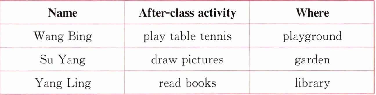 答案:1. I'm Su Yang. Let's have fun after class. This is my plan. I want to draw pictures in the garden. 2. I'm Yang Ling. Let's have fun after class. This is my plan. I want to read books in the library.