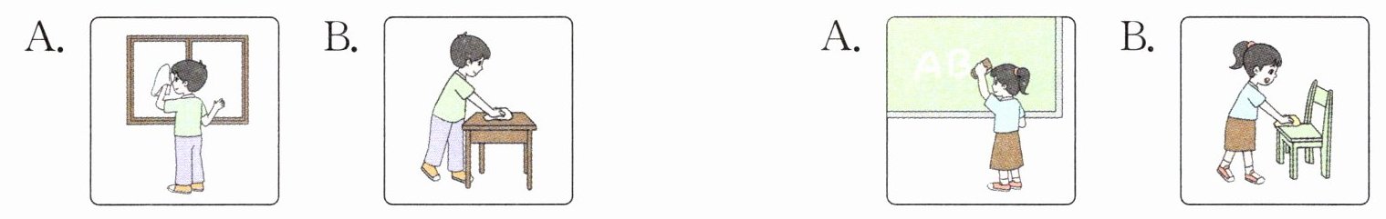 (A)1. 我会擦窗户。(A)2. 让我们擦黑板吧。