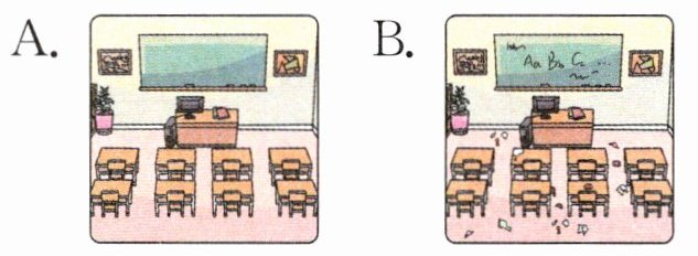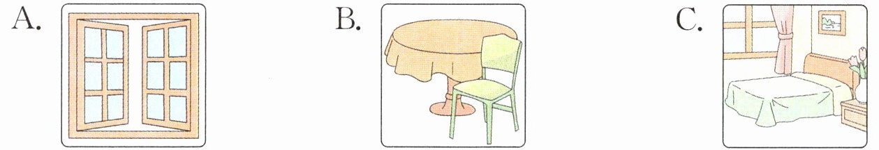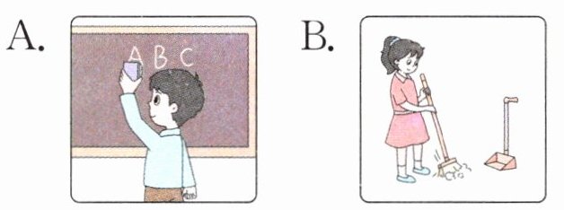 (B)2. A. 他在家。 B. 他擦黑板。 C. 请擦书桌。