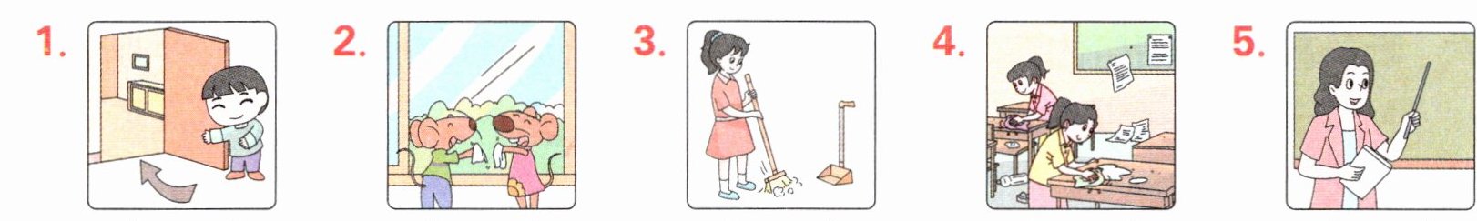 答案:1. Put the books and school things away. 2. Clean the blackboard. 3. Sweep the floor. 4. Clean the windows, desks and chairs. 5. Put the desks and chairs away.