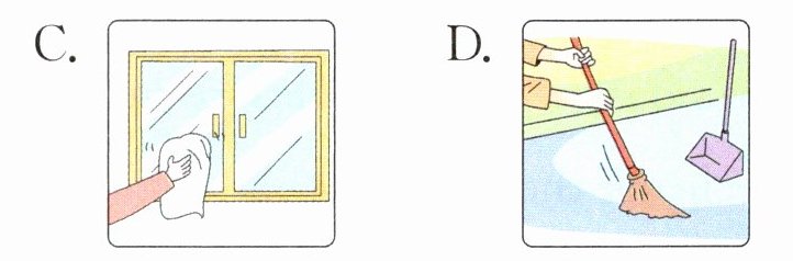 答案:1. morning 2. clean 3. sweep 4. floor 5. sister 6. window