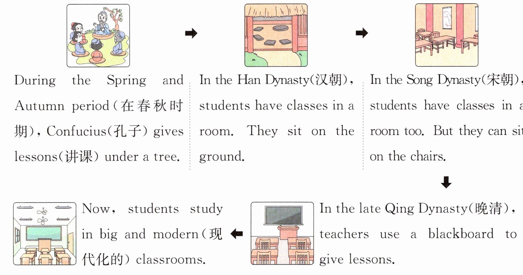 )2. In the Han Dynasty,students don’t have classes in a room.