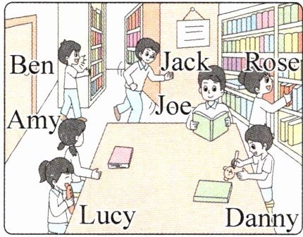 二、(2025·连云港海州区期末)看图,找出同学们的错误行为,从方框中选出合适的单词补全句子。(有一个多余单词)