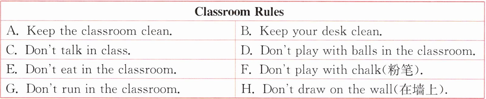 二、新素养 自我管理 定班规,展班风。请根据以下班规,选出对下列行为的规劝。