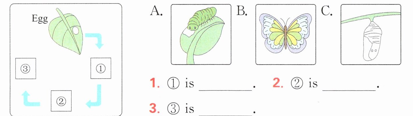 (二)根据短文内容,将毛毛虫变成蝴蝶的过程补充完整,填序号。
