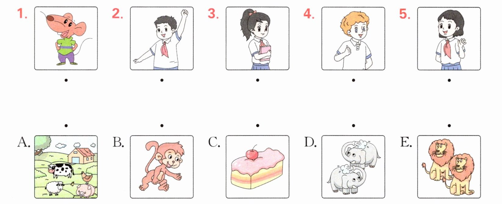 二、听录音,将相关联的图片连线。(听两遍)