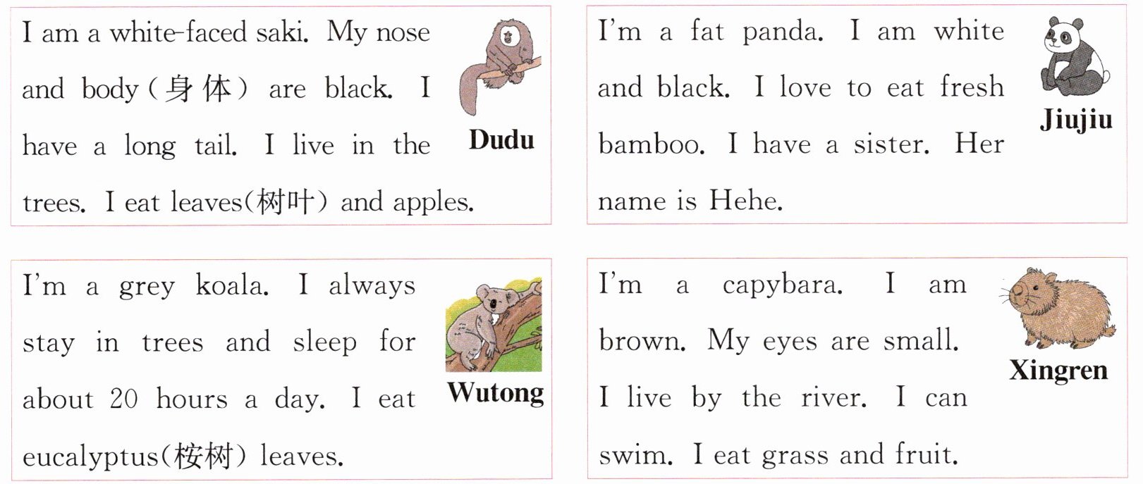 二、(2025·南京鼓楼区期末改编)在红山森林动物园里,亮亮一行人见到了许多“明星动物”。根据材料内容,选择正确的答案。