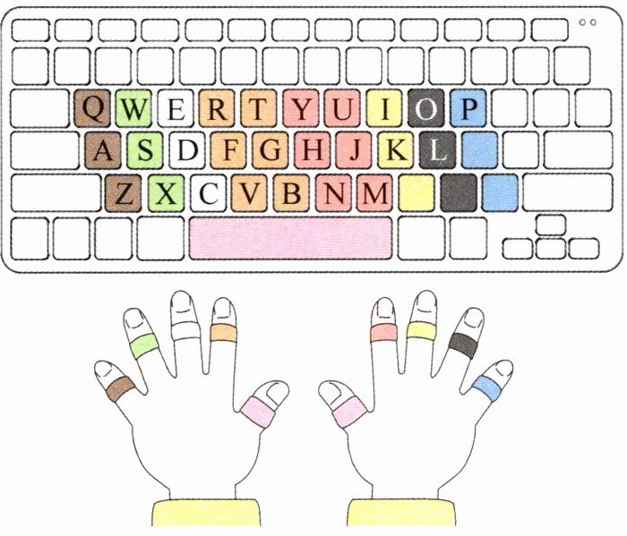 二、根据例子和图片提示,写出打字时每个字母对应的颜色。
