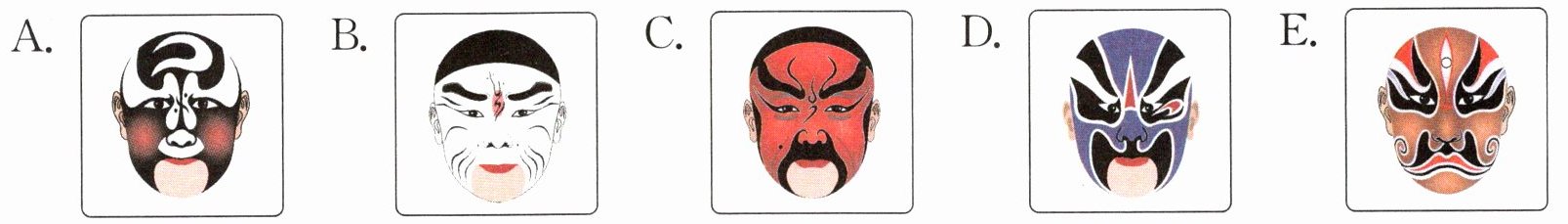 二、亮点原创·亮亮来到客厅,奶奶正在看戏曲频道播放的京剧。奶奶告诉亮亮,京剧脸谱的颜色反映了角色的性格品质。根据短文内容,完成下列任务。