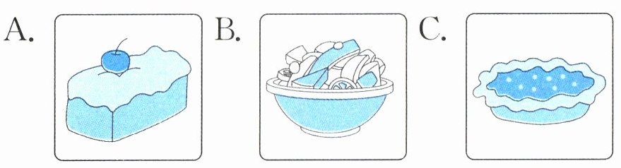 (B)3. A. 我有一些蛋糕。 B. 我喜欢蛋糕。 C. 我想要一些蛋糕。