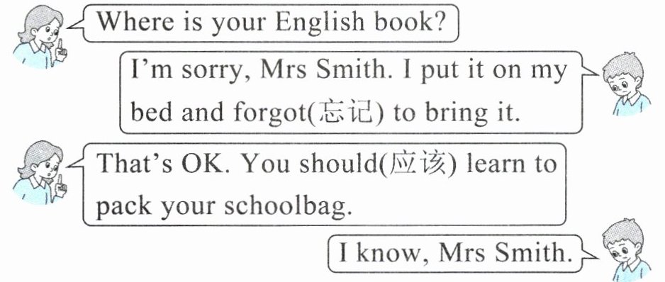 Then(然后)Mrs Smith asks the students to put the English book on the desk. But Mike doesn’t have an English book. Mrs Smith comes to Mike.