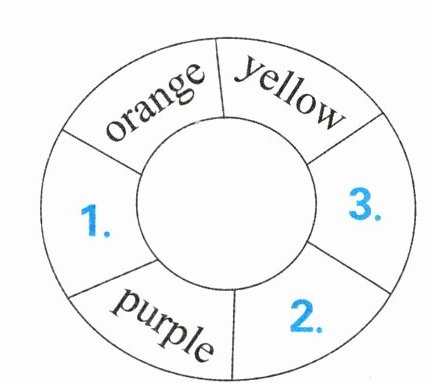 颜色充满魔力。在传统艺术中,有三种原色:红色、蓝色和黄色。还有三种次生色:橙色、紫色和绿色。我们可以混合原色来得到次生色。这是色轮。看橙色,红色和黄色紧挨着橙色,我们把红色和黄色混合就能得到橙色。红色和蓝色紧挨着紫色,我们把红色和蓝色混合就能得到紫色。你知道什么(颜色混合)能得到绿色吗?