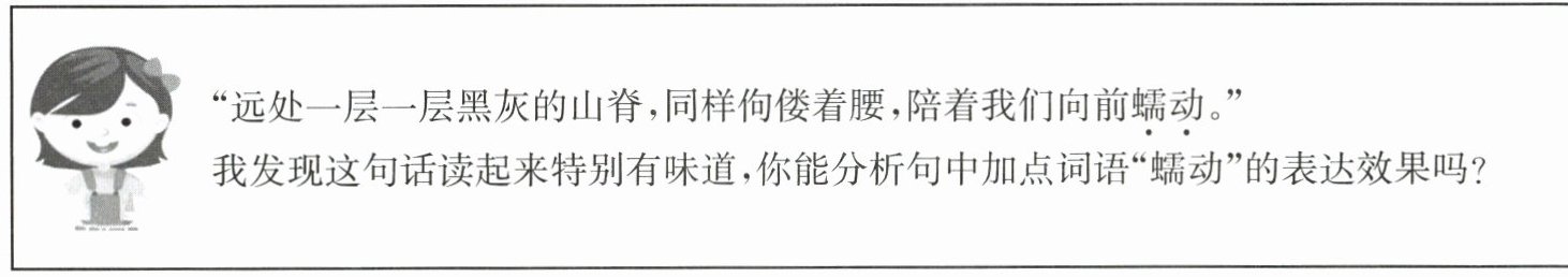我发现这句话读起来特别有味道,你能分析句中加点词语“蠕动”的表达效果吗?