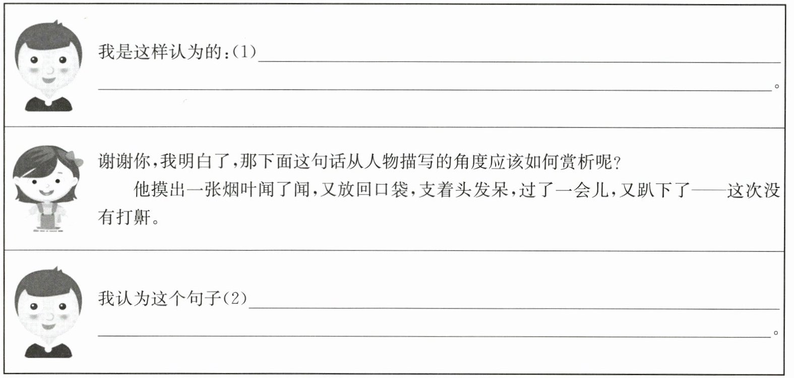 谢谢你,我明白了,那下面这句话从人物描写的角度应该如何赏析呢?