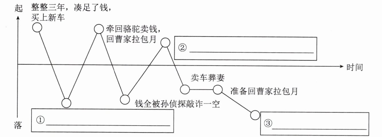 答案:1.①连人带车被大兵捉走②与虎妞结婚,虎妞为其买车③发现小福子死了