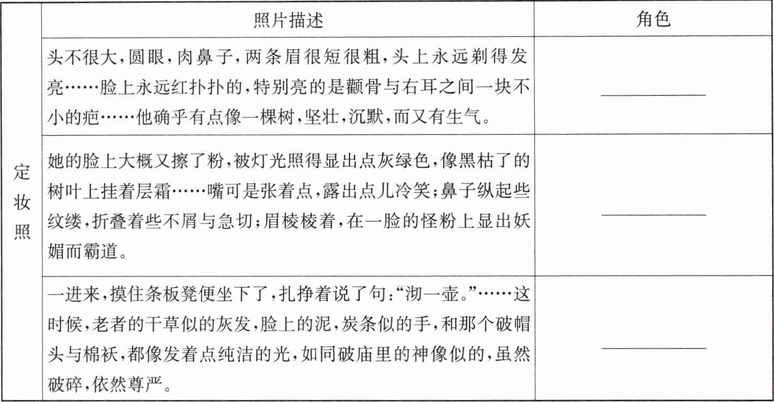 二、学校话剧社准备重新演绎《骆驼祥子》,需要挑选话剧演员,选择合适的镜头,请完成相关任务。