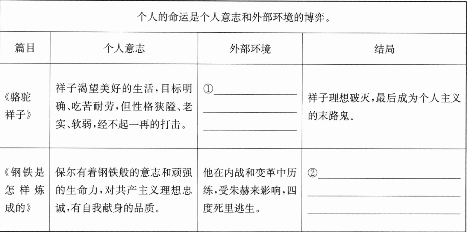 八、结合名著内容,根据表格提示,分析主人公的命运。