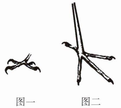 3. 右图是某些鸟的足,具备图一、图二这种足的鸟类分别适合生活的环境是(