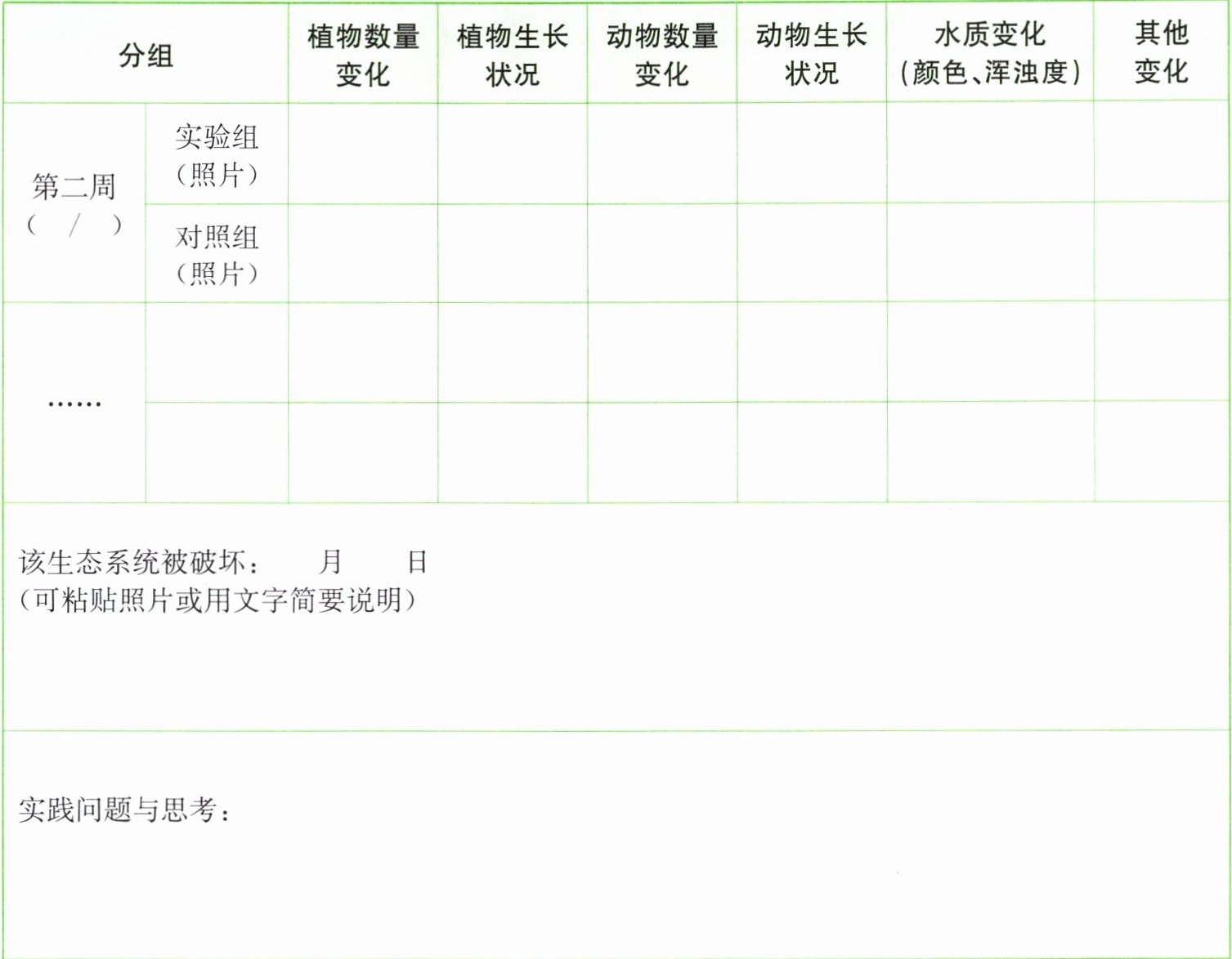 参考教科书或下方的表格,设计本组的实践记录表,坚持定期观察并做好实验记录。