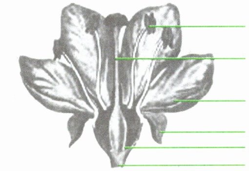 2. 按照由下而上、由外而内的顺序观察桃花(百合花或康乃馨),说出花的各部分结构的名称。