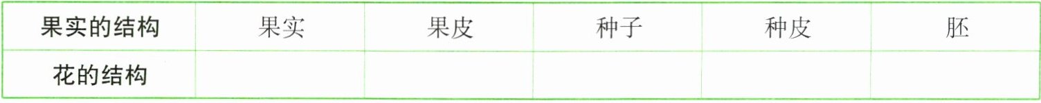 3. (2) 果皮 种子 (3) 种皮 胚 观察结果: 果皮 种子 讨论: 不是所有植物的花都能发育成果实,比如黄瓜的雄花就不能发育成果实