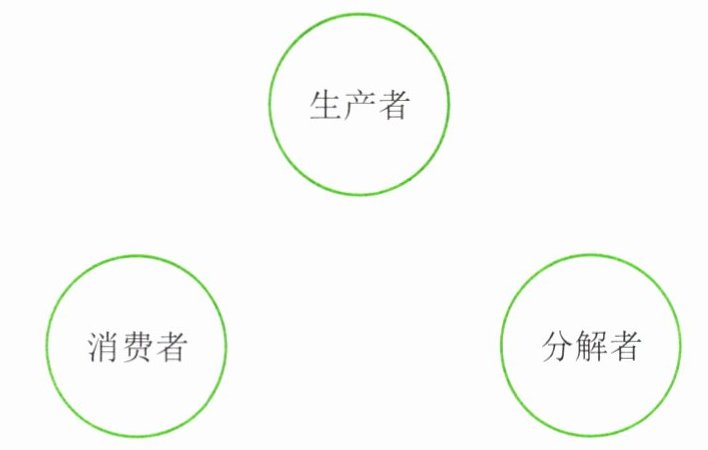 在分析上页池塘生态系统模式图的基础上,分析该生态系统中生产者、消费者和分解者之间的营养关系,尝试在下图中用箭头表示各生物成分之间的营养关系。