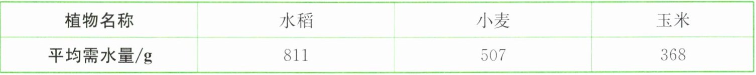 由上表中数据可知,不同植物的需水量