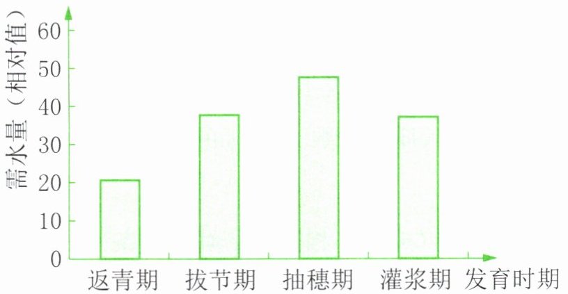 2. 下图为小麦不同发育时期需水量的统计图。由下图数据可知,同一植物不同生长发育时期的需水量