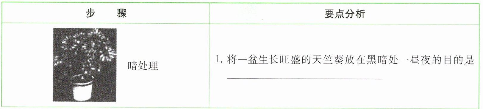 1. 在课前一天,将一盆生长旺盛的天竺葵用黑色塑料袋罩上一昼夜。