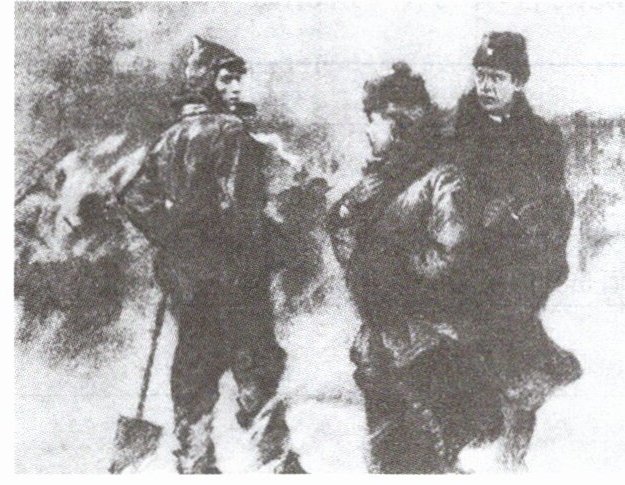 保尔在筑路工地上,冒着严寒清扫积雪时,碰到了一辆因缺燃料而停下的火车,乘客中就有冬妮娅和她的丈夫。