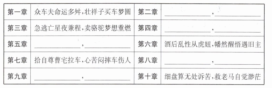 2. 《骆驼祥子》共 24 章,初读之后,在概括主要内容的基础上,仿照示例为部分章节拟写小标题。