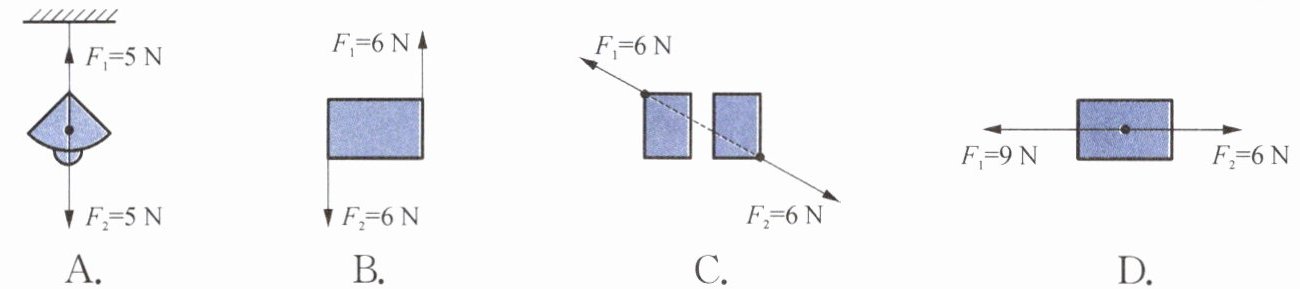 11. 下列选项中,F₁和F₂相互平衡的是(