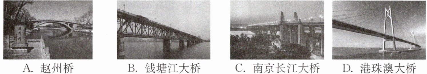 2. 如图所示是我国古今一些著名的桥梁,其中历史最悠久的是(