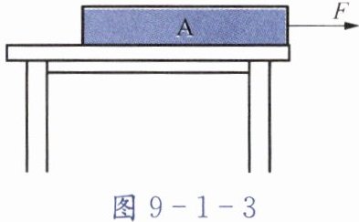 8. 如图9-1-3所示,一块长为l、质量分布均匀的木板A放在水平桌面上,木板A右端与桌边相齐。木板A在水平力F的作用下缓慢向右移动,直至其右端离开桌边$\frac{l}{3}$。在木板A移动的过程中,下列说法中正确的是(