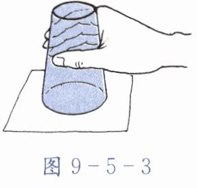 6. 如图9-5-4所示,将一满桶纯净水(高约40cm)开口朝下放在水中,可以看到(