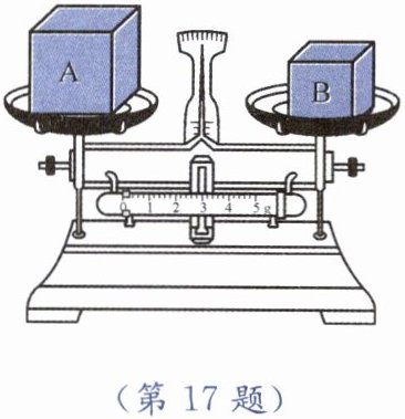 17. 如图所示,将托盘天平调节平衡后,在两个托盘里分别放入实心物体 A、B,天平仍然保持平衡,则$m_A$